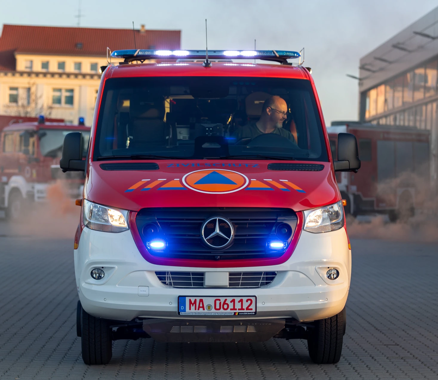 Dieser CBRN Erkundungswagen ist ein Fahrzeug des Zivilschutzes und gehört zu einer neuen Generation von insgesamt 518 geplanten Fahrzeugen, welche gleichmäßig an die Bundesländer in Deutschland verteilt werden.